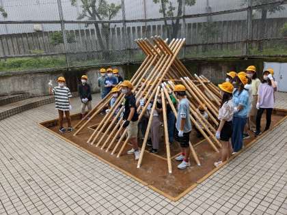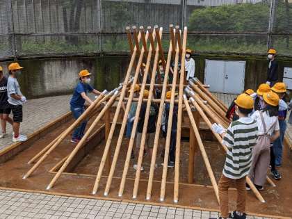 弥生文化博物館でクラスで協力して竪穴式住居を作りました。