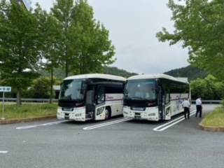 学校を出発して一度目の休憩です。途中で雨が降りましたが、今はやんでいて良かったです。