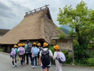 グループごとに分かれて、かやぶきの里を散策しました。ガイドさんに説明をして頂きながら、かやぶきの事を学びました。
