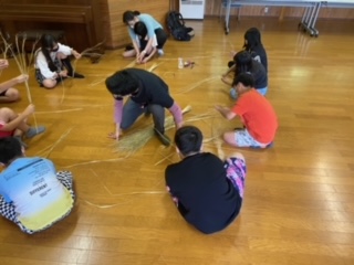 天然のわらを使って首飾りを作りました。世界で一つだけのオリジナル首飾りが出来ました。