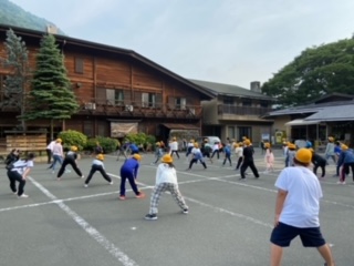 朝の集いで、全員そろって元気よく体操をしたり、今日の活動内容の確認をしたりしました。