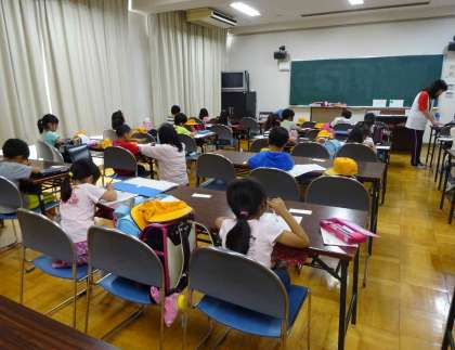 放課後ステップアップタイムは曜日によって実施する学年が違います。6月25日(木)は、1年と3年の日です。1年は5時間目終了後、3年は6時間目終了後に、参加希望者が多目的室で、宿題やプリントなどを自主的に行います。1年生も3年生も、静かに集中して学習をしていました。