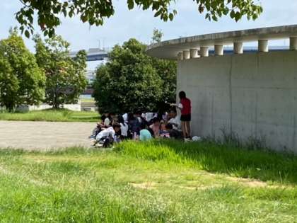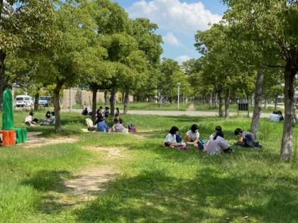 人と防災未来センターの近くのなぎさ公園でお弁当を食べました。日陰を見つけて美味しく頂きました。