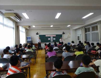 7月8日(水)5年生で非行防止・犯罪被害防止教室が行われました。講師に大阪府警の関係機関、難波サポートセンターから2名をお招きし、非行行為の内容や防止について、また、犯罪被害にあわないためのお話などをしていただきました。子どもたちは真剣な表情で、お話を聞いていました。