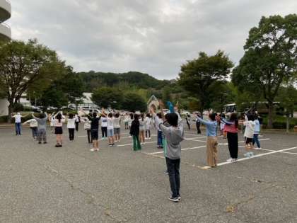 2日目がスタートしました。全員元気です。朝の集いで体操をしたり、今日の予定を確認したりしました。
