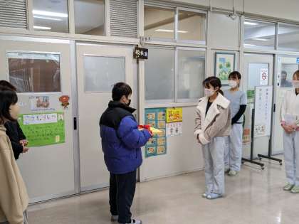 1月23日(月)、1月24日から30日までは全国学校給食週間です。毎年この時期に本校では給食調理員さんへお礼のお手紙をお渡ししています。今年も児童朝会でお手紙を代表から渡していただきました。