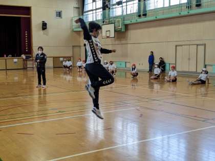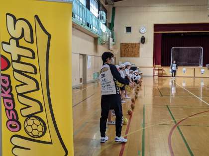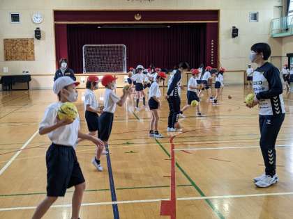 1月24日(火)2・3時間目、4年生はトップアスリートによる出前授業でハンドボールの体験をしました。「大阪ラヴッツ」のコーチ、選手方に教えていただきました。ボールをバウンドさせて、左右左、止まる等リズムにのって前へ進むところから、シュートの練習までしました。