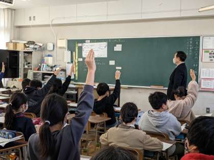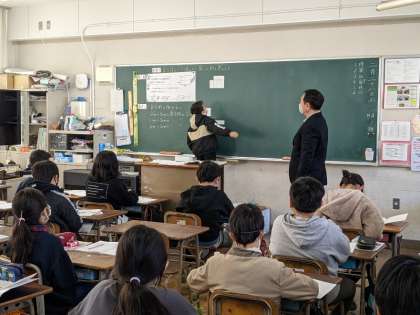 2月28日(火)、4年1組では算数科の公開授業がありました。直方体や立方体の切り開いた形を考えました。