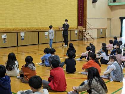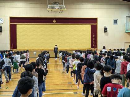 3月23日(木)、令和4年度修了式を講堂で行いました。在校生を代表し5年生の代表に修了証を渡しました。