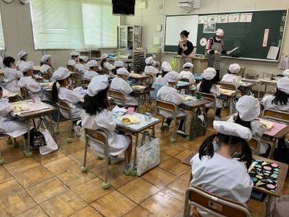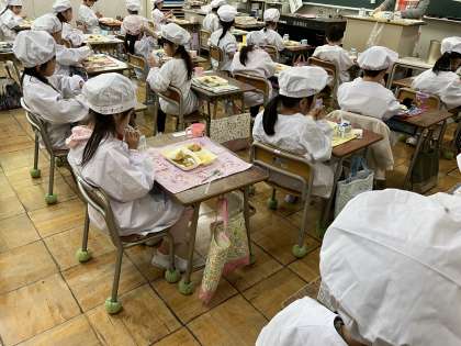 メニューは『カツカレーライス・フルーツゼリー・牛乳』です。みんな美味しそうに、モリモリ食べていました。ほぼ完食している日が続いているようです。昨日から、配膳・返却も担任の先生と一緒に自分達でしています。
