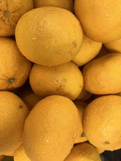あまなつかんは、夏みかんから生まれました。さわやかで甘酸っぱい味がします。かぜを防ぐビタミンCが多く含まれています。今日のあまなつかんは、佐賀県産でした。