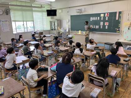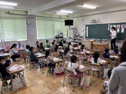 1年生には初めての参観授業。緊張気味に手を挙げる子、元気に手を挙げる子、それぞれに頑張る姿がありました。