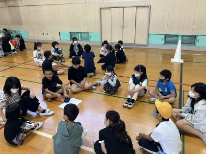 6年生がリーダーになり、班のメンバーで自己紹介をした後、各班毎に簡単なゲームをして遊びました。初めての『ふれあい集会』のリーダーで緊張する6年生。そんな6年生に甘える1年生。それぞれの表情がとても生き生きとしていました。