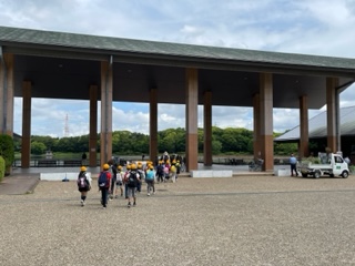 大きな屋根があり、本日は2校だけということで、もし雨が降ってきてもここで昼食をとってもいいと許可をいただきました。