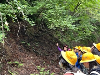 芦生の森ではモリアオガエルの産卵の様子やクマの皮剥のあと、鹿の角に触れることなど大阪では味わえない体験をすることができました。