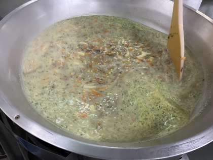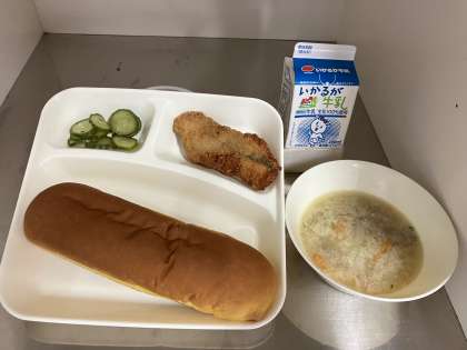からいりしたベーコンとにんじん、たまねぎ、じゃがいも、コーン、マッシュルーム、パセリがはいっています。味付けには、塩、こしょう、うすくちしょうゆ、野菜ブイヨンが使われています。