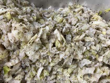 ボイルしたキャベツに、赤じそ、砂糖、米酢、うすくちしょうゆを合わせて煮たタレをキャベツにかけていただきました。