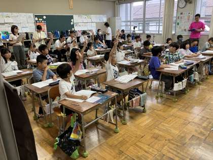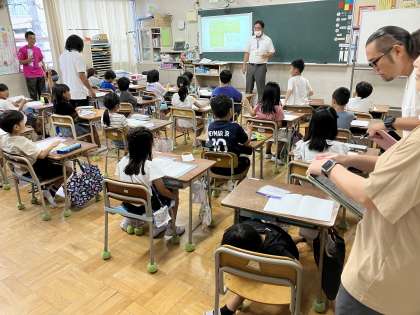 2年生算数科図形単元の授業を皆で参観し、5時間目の時間と放課後には教員全員参加の討議会を行いました。若手教員もベテラン教員も皆で意見を出し合い、学びを深めました。