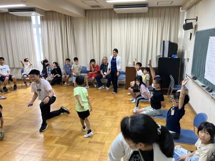 今日の5時間目『キラキラタイム』では、「ジェスチャーなんでもバスケット」を行いました。鬼になった友達が行うジェスチャーに、みんな大盛り上がりでした。1年生から6年生まで、楽しく活動できました。