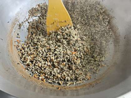高野どうふは、鎌倉時代の終わりごろから食べられている伝統的な食べ物です。うすく切ったとうふを凍らせ、乾燥させて作ります。今日は、豚ひき肉やひじきを使って砂糖やうすくちしょうゆなどで味付けしています。