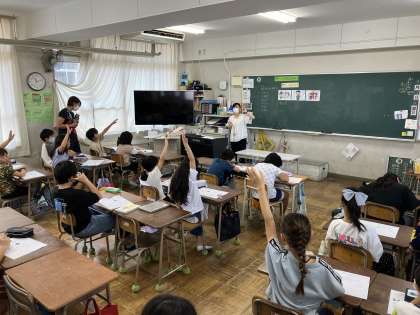 今日も5年生の栄養教室に引き続いて、北粉浜小学校から栄養教諭さんが来られて、栄養指導をしてくださいました。4年生のテーマは、『野菜の大切さを知ろう』です。1日に食べることが望ましい野菜の量や、野菜をたくさん食べるための方法など野菜についてしっかり学習しました。