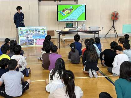 4年生では、社会科の学習で『浄水場』や『下水処理場』について学習し、私たち大阪市に住む皆が普段使っている『水』について考えます。今回は、柴島浄水場から講師の方が来校され、出前授業を行ってくれました。