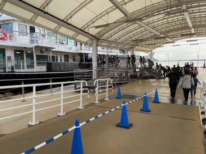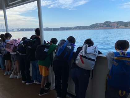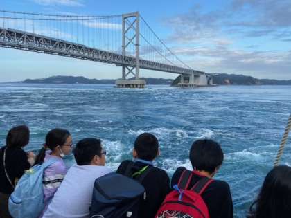 うずしおクルーズ乗船場の福良港を出港しました。本物のうずしおを間近で見ることができて大喜びでした。