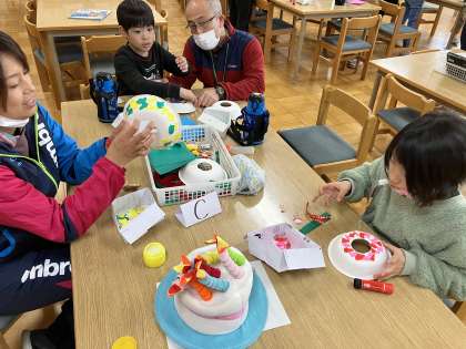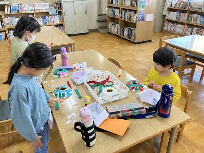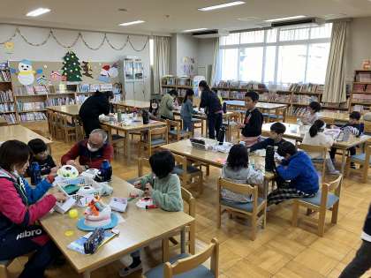 金曜日の『キラキラタイム』では、クリスマスチャーム作りを行いました。3・4人ずつのグループに分かれて、クリスマスカラーの色紙を使いながら、かわいいチャームを作っていました。
