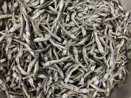 *ごまめ…「田作り」ともいわれています。昔、肥料としてイワシを田にまいたところ、豊作になったことから、豊作を願う気持ちがこめられています。今回は「ごまめ」が不漁のため、かたくちいわしのにぼしである『かえり』を使用しています。