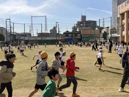 寒さに負けず、みんな元気に走っており、『10周走った!』『15周走った!』と報告してくれる子もたくさんいます。