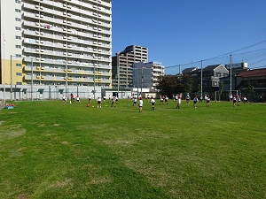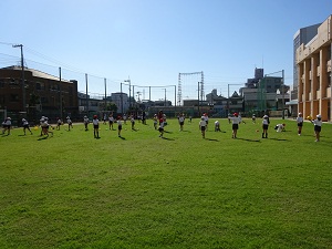 11月4日(水)秋空のさわやかな空のもと、運動場で1年生が体育の授業をしていました。ボールを使った運動で、向かい合ってドッジボール用のボールを使い、キャッチボールをしていました。大きめのボールは慣れていないのか、変な方に投げてしまうこともありました。それでも、嬉しそうにボールを追いかけていました。ドッジボールの腕を上げるかな。