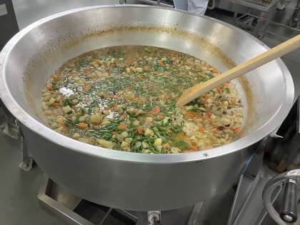 今日は入学・進級をして初めての給食でした。給食室には、児童の元気な声が響きわたっていました。