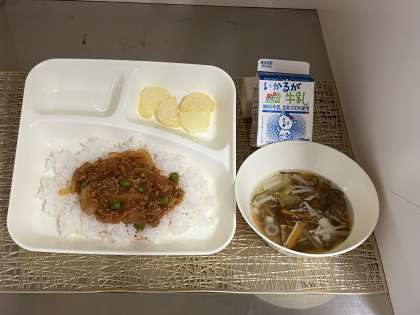 もずくは、ホンダワラなどの海そうにくっついて育ちます。「藻につく」から「もずく」と呼ばれるようになりました。1月〜3月ごろに採れます。今日のもずくのスープには、もずくの他にささみ、にんじん、白ねぎ、えのきたけがはいっています。