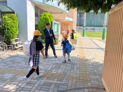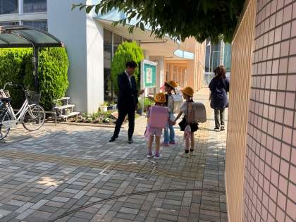 毎朝、児童が登校する時間に校長先生が正門前に立って朝の挨拶をしています。「おはようございます」の元気な声や、「校長先生じゃんけんしよう!」といって毎日校長先生とじゃんけんするのを楽しみにしている児童もいます。
