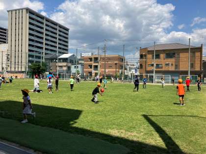 待ちにまったお昼休みの時間です。先生とボール遊びや鬼ごっこをしたり、遊具であそんだりしている児童もいます。
