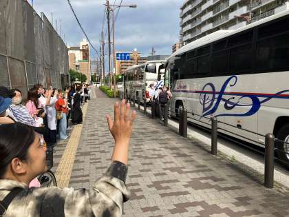 本日8時5分頃、5年生52名欠席者なく美山体験学習へ出発いたしました。朝早くのお見送り、ありがとうございました。