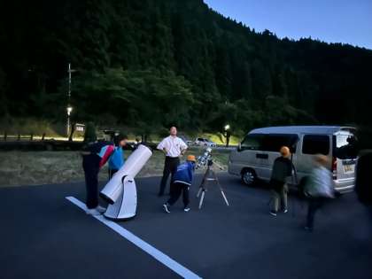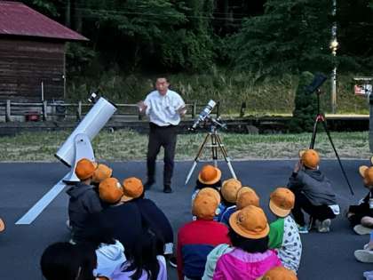 今日は天気に恵まれて、美山の大自然の中で星空観察をすることができました。真っ暗になると大きな天体望遠鏡でいろいろな星を間近に見ることができて、大喜びでした。