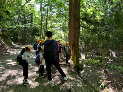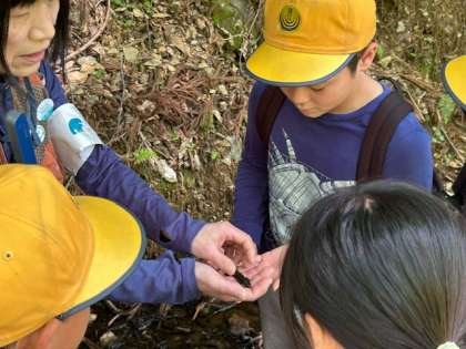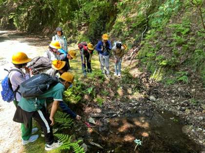 芦生の森では、野生の熊が削った木の幹やアカハライモリ等の野生生物を間近に観察することができました。