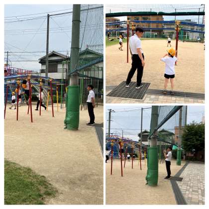 昨日のロング休憩の様子です。うんていでは、1年生たちが口々に「校長先生見て〜」と一生懸命にうんていをしていました。校庭では鬼ごっこやドッチボールが人気です。