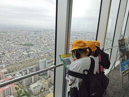 3年生の子たちは地図をもとに通天閣や大阪城、長居公園を見つけていました。