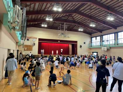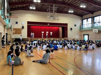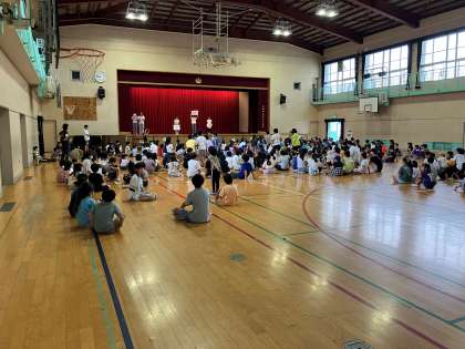 3つのヒントを聞いて先生の名前を当てるゲームです。正解発表の時には、大きな歓声が上がっていました。
