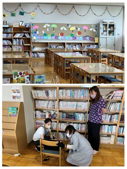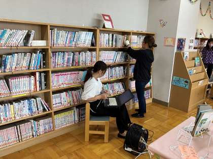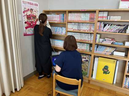 昨日は図書室で学校司書の二木先生と図書ボランティアのみなさん、教職員で「蔵書点検」をしました。「蔵書点検」とは、学校の図書室に登録している本がデータと一致しているか、行方不明になっている本はないかの確認をする事です。また破損や汚れなどはないかも点検しています。