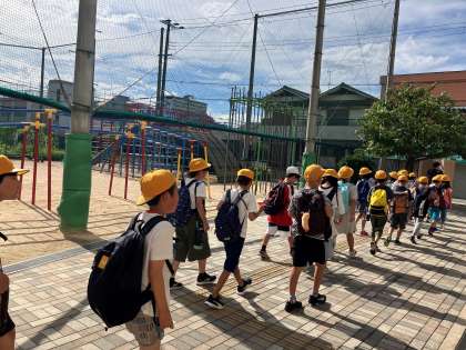 台風の影響でお天気が心配されましたが、4年生が無事「津波・高潮ステーション」へ出発しました。