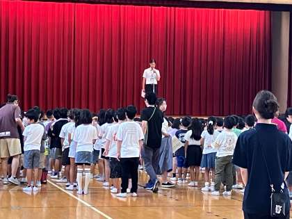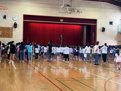 昨日の児童朝会は講堂で行いました。校長先生からは、16日の敬老の日についてのお話がありました。敬老の日とは、77年前に「多年にわたり社会につくしてきた老人を敬愛し、長寿を祝う日」として制定されたそうです。また原田先生からは、「9月は全国で朝食月間です。生活リズムを整えて、朝ごはんをしっかり食べる習慣をつけましょう。」というお話がありました。