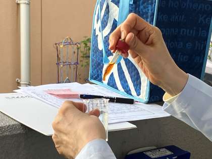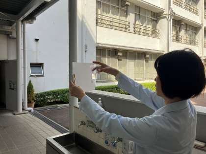 今日は、薬剤師の先生が学校環境衛生検査の飲料水の検査に来られました。小学校では、児童の安全の為にいろいろな検査を行っています。