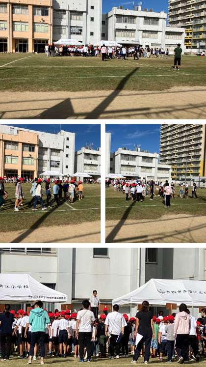 1時間目は、全校児童による開会式と閉会式の全体練習がありました。代表委員会の児童が持つプラカードに合わせて行進しました。当日も今日のように良いお天気になればいいですね。
