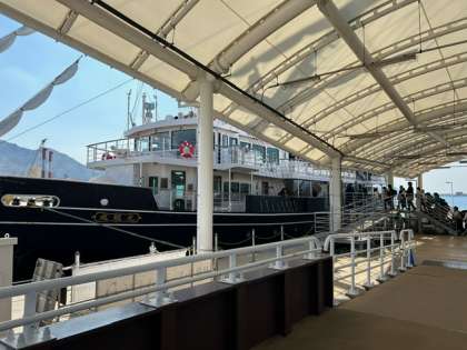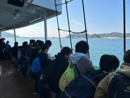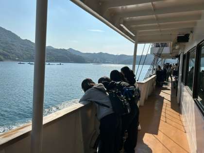 うずしおクルーズで福良港を出航しました。船からの景色を楽しんでいます。うずしおが見れるか楽しみです。