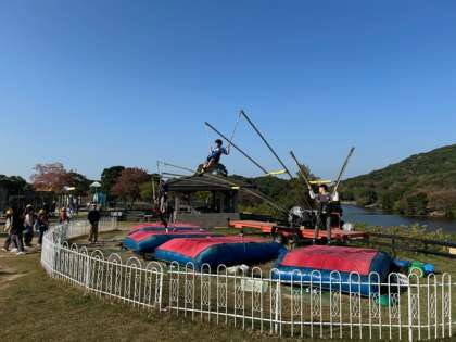 イングランドの丘の遊び広場では、エアージャンパー、ストラックアウト、おっとっと等いろいろな遊びを楽しむことができました。