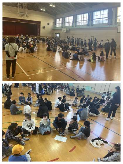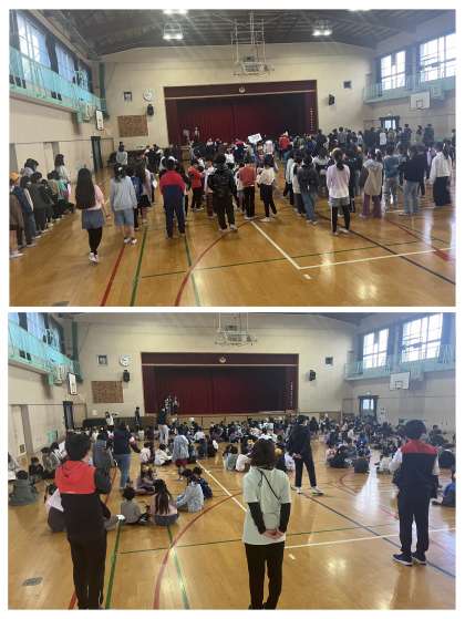 今日の集会では、ふれあいグループに分かれて「山手線ゲーム」をしました。お題は、おかしの種類や、花の名前、緑色ものなどです。朝からとても盛り上がっていました。