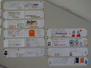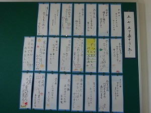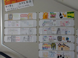 1月22日(金)5年生が国語で宮沢賢治作「注文の多い料理店」を学習しました。少し難しい表現もある有名な宮沢作品の一つです。読み取った内容をブックカバーにして、本の内容を紹介する作品を作りました。また、冬の様子や気持ちを俳句で表した短冊も掲示してありました。